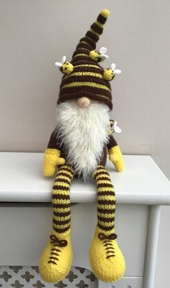 I created the bumble gnome using DK yarn but you could use any weight, he would just be a different size! He is filled with 125g of poly pellets, you could use rice instead. I used King Cole fur yarn for the beard. 35g of poly filling