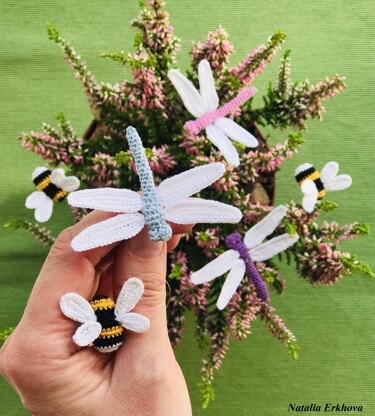 Such insects can decorate your crocheted and natural flowers, be used as jewelry (brooches, pendants or earrings), decoration of clothes, complementation for a handmade toy and interior decor.