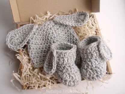 It is a TUTORIAL on how to crochet Bunny Baby Set. You will have a quick and fun time crocheting this cute baby set. This cute baby set will make a great gift for baby shower and Photo Prop!