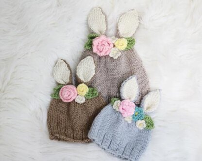Adorable bunny hat pattern. It makes a perfect photography prop for newborns & a unique gift. **Sizes (finished hat crown length and height in inches): -**Newborn (0-3 months) approximately 5.25 x 4.75 - 3-6 months approximately 5.5 x 5.75 -6-12 months approximately 6.5x 6.25 -Toddler approximately 7.25 x 7.5 -Child approximately 7.75 x 8.5