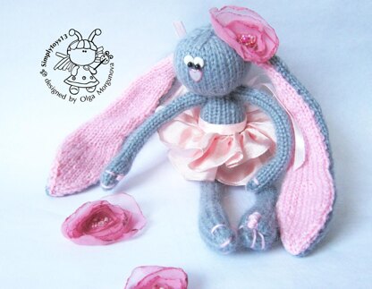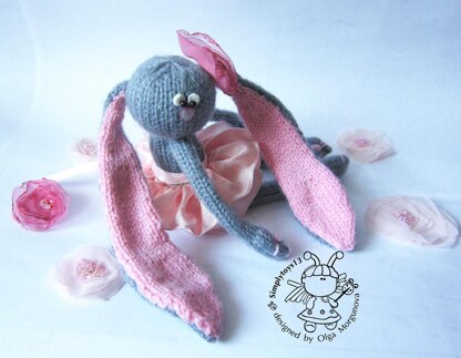 Materials needed • 4 double-pointed needles in a size suitable for the yarn weight you are using. I recommend using needles a size or two smaller than the yarn calls for, to produce a firm fabric. İ used Needles size 2 (3mm) • Gray mohair yarn for a bunny Mountain Colors Mohair 109 - 219 yards (100 - 200 m) • A little pink yarn for an embroidery of a claws, ears • Toy stuffing • Plastic eyes and nose • Piece of White felt • Yarn needle • Stitch holder • Piece pink ribbon 3 cm wide for skirt (100 cm) • Satin ribbon (50 cm)