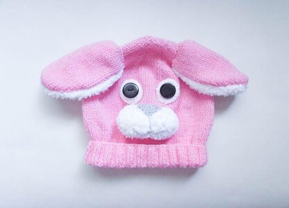 Adorably cute Bunny Rabbit Animal Baby Beanie Hat. Very easy and quick to make with lots of pictures to help you along the way. This hat pattern is knitted flat on 2 needles and seamed up the back and is entirely knit. It will look adorable and keep your cutie snug and warm