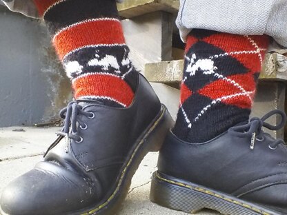 You can knit the argyle version the traditional way--flat, or follow the link to my blog for instructions on knitting argyle socks in the round.
