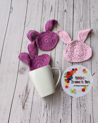 The Coaster is a on-piece seamless Crochet Coaster shaped to form the outline of a bunny face; approximately 4.5"