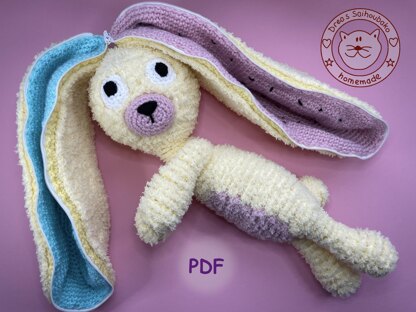 With yarn length 150m/50g this bunny is about 35 cm high.