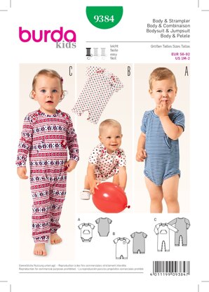 Burda B9384 Babie's Bodysuit and Rompers Sewing Pattern