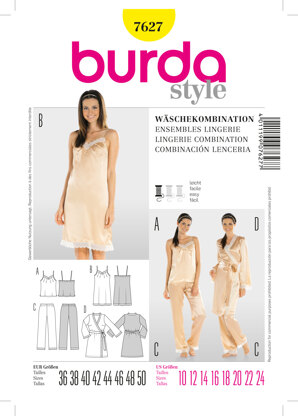 Burda Style Lingerie Combination Sewing Pattern B7627 - Paper Pattern, Size 10-24 is a Beginner Sewing pattern by Burda Style, available as a Paper Pattern and includes instructions in English, French, Spanish. Super fun to make, this pattern could be your next masterpiece!
