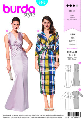 Burda Style Women's V Neck Evening Dress B6442 - Paper Pattern, Size 8-18 is a Intermediate Sewing pattern by Burda Style, available as a Paper Pattern and includes instructions in English, French, Spanish. Super fun to make, this pattern could be your next masterpiece!
