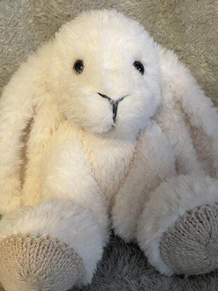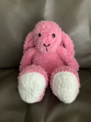 Meet Burdock Bunny. He's a very cuddly bunny design especially for the lovely super chunky faux fur yarns or chunky chenille yarns. I have listed the yarn brands on the pattern but I would suggest Sirdar Alpine; James C Brett Chinchilla or Scheepje's Furry Tales. Chenilles I have tried are James C Brett Flutterby and Cygnet Chenille Chunky, there are other yarns around the world of course. Burdock is knitted flat on 2 knitting needles. His feet (large feet), legs, and body are knitted as one piece, head, ears, arms, and tail are knitted separately and sewn in place. I have included markers for hip joint seam, eyes and ear placements. Burdock Bunny measures approximately 14 inches/35cms from head to toe or 10 inches/25cms sitting. A perfect bunny for a child’s best friend. As always I have included a very detailed making up guide to help you create a perfect Burdock Bunny for someone to love.