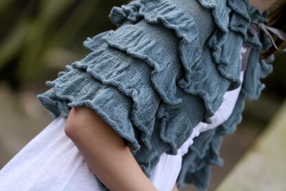 A vintage-style cape of delicately layered ruffles.