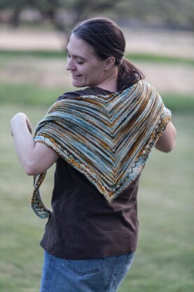 Finished Dimensions Approximately 56” (142 cm) wingspan x 16” (40.5 cm) depth, after blocking Gauge 20 sts/28 rows = 4” (10 cm) in Garter Stitch pattern, after blocking Yarn Yarn Love Elinor Dashwood Big Foot (80% superwash merino/20% nylon, 412 yards/ 5 oz.) 1 skein, Bus Stop Needles US 5 [3.75mm], or size needed to obtain gauge Supplies Tapestry needle, measuring tape, scissors, three stitch markers.