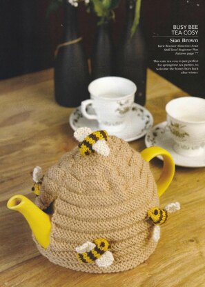 This is a pattern for a Busy Bee Tea Cosy, originally published in Knitting magazine in a retro projects issue. It is made in a simple knit/ purl stitch to form ridges, and has small stuffed bees to decorate. It is based on a traditional design. You will need small amounts any dk yarn for the bees. Main photo Laurel Guilfoyle for Knitting magazine.
