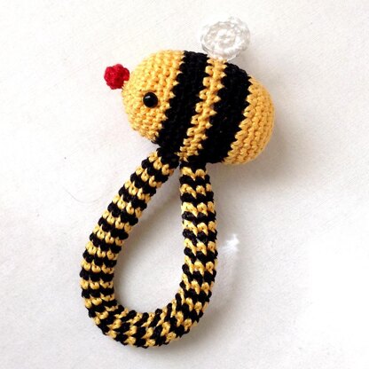 The finished rattle is 18cm (7 inches) tall when made in doubled up DMC Petra Crochet Thread No3 (DK equivalent).