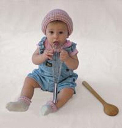 This unique hat and bootie set is the icing on the cake for your little princess. The “frosting layers” are picot hems that are knitted right on to each other. Finishing is minimal for both the hat and the booties, which are both knitted entirely in the round. The booties are constructed like little socks, featuring a turned hem with a ribbed cuff and traditional heel flap and gusset so they fit snugly. Knit this in a soft fingering weight yarn with lovely drape for an heirloom that will be passed down from daughter to daughter.