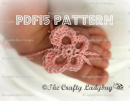 Use heavier weight cotton threads or yarns for many sizes up to toddlers. Featured photos are made using #10 cotton crochet thread. Another great idea with this pattern is to leave off the toe loop and ankle ties for a super quick applique or embellishment to use on other projects such as headbands, hats, clothing, scrapbooking, etc.