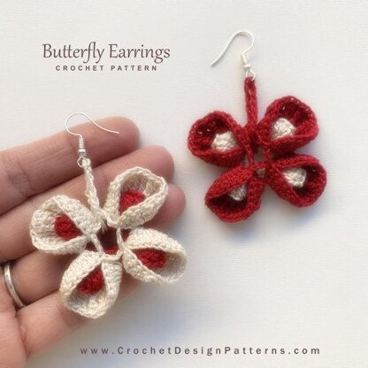 Butterfly crochet earrings for valentine's day | pdf crochet pattern