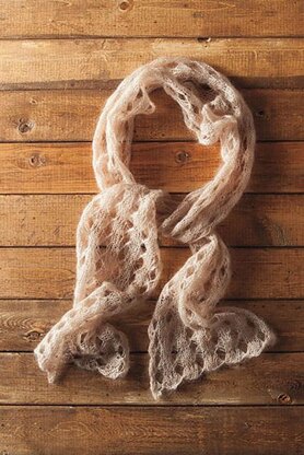 The Butterfly Lace Scarf balances the very open lace of the butterfly stitch with the beautiful halo of mohair to create texture and visual substance. The long floats are made by double yarn overs which are easier and quicker than dropping stitches, especially when working with mohair yarn. Although it may look tricky at first, it’s actually quite easy to knit with impressive results.