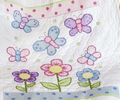 Designed by: Linda Gillum. Celebrate your bundle of joy with this sweet butterfly and flower picture. This baby cheerful baby piece is the perfect companion to our Butterfly Birth Record and will be a treasured keepsake for your nursery.
