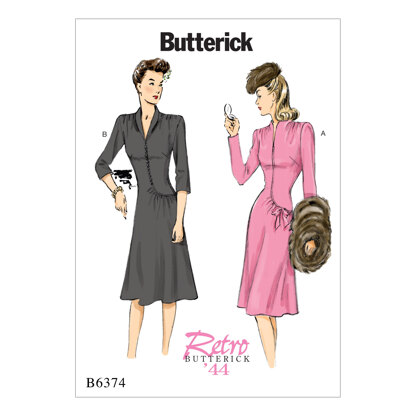 Butterick Misses' Swan-Neck or Shawl Collar Dresses with Asymmetrical Gathers B6374 - Sewing Pattern