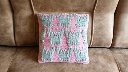 This pillow pattern includes an introduction instruction, chart, step-by-step photos, and description written in standard American terms, in English (25 pages, 102 photos).