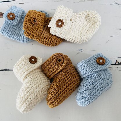 A lovely simple but effective crochet baby booties pattern that button up, with sizes starting as small as new-born baby to 6 months.
