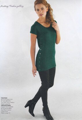 This is a pattern for a Button Detail Tunic, originally published in Knitting magazine. I don t have the issue date but it will be in the months following Dec 2012. It is a slim fitting tunic in stocking stitch with garter stitch edges, cap sleeves and buttons on one of the sides. Photos Laurel Guilfoyle for Knitting magazine.