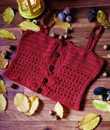 This buttoned-up top is great for summer and fall, as it can be worn as it is or on top of blouses and shirts.