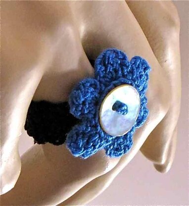 I designed it so that I could use the pretty little abalone buttons that I’ve had in my stash for years. Use any "bedspread weight" crochet thread (size #10) in any color to make your Buttonflower Charms, then slide one or more onto a dark-colored band of your choosing.