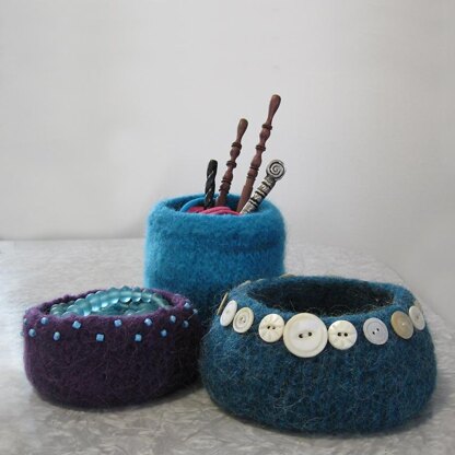 Use oddballs from your yarn collection to make several sizes of these fun bowls. Embellish with buttons or beads if you like!