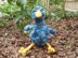 Byrdo is knit from the bottom up on double-pointed needles. Wings, tail, feet, and beak are all knitted separately and then added once the body is knitted. The legs are I-cords knitted on double-pointed needles with pipe cleaners inside them.
