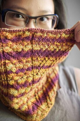 A pretty cowl for all seasons. The cable and lace patterns alternate around the loop, creating a lovely mix of textures. The knitting is easy, with every other round worked even in knit and purl. Perfect for beginners to lace and cables. Single or double loop.