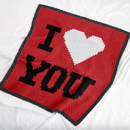 C2C Crochet Pattern I LOVE YOU Red Throw Intarsia Valentine's Day