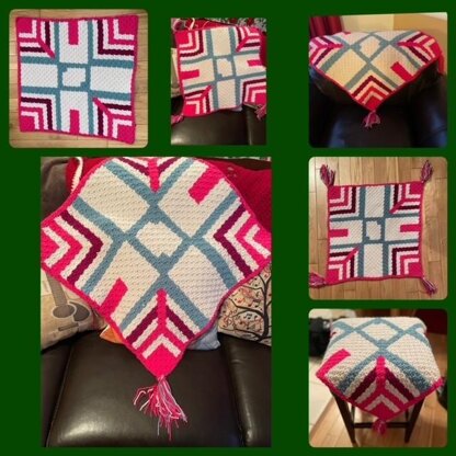 This wall hanging is worked diagonally and will start at the bottom right corner up to the top left corner. The written pattern is for row by row C2C crochet. Pattern was designed as a wall hanging and for this is it best suited to miniC2C using a G hook as this produces a smaller square with fewer holes and overall tighter look. It also makes an eye catching throw with tassels and there is some additional sizing information included.
