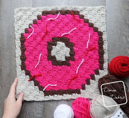 12 months and 12 more squares! This year’s C2C CAL theme is Delicious Desserts! February’s square is a dessert after my own heart, a donut with some tasty sprinkles. I just a good chocolate cake donut in February (or any time, let’s be real) and I couldn’t think of a better design for this month.