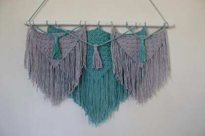 Notes: I love the look of Macramé but do not have the skill to make them so here is my C2C crochet version You will be making: 1 long cord for hanging, 1 medium cord with a tassel attached, 2 small cords for tassels, 2 small triangles, 1 large triangle and 3 tassels