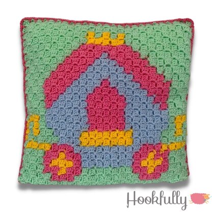 The pattern is for a princess carriage cushion or C2C square and includes a C2C graph with written instructions. (Not a tutorial, you will need to know how to read a C2C pattern)