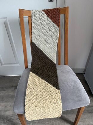 Is very pretty with a seed stitch pattern with creates a textured, thick feel to the scarf. The C2C pattern allows the naturally gradient yarn to change colour in the diagonal.