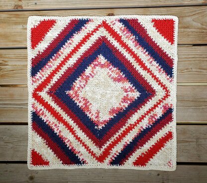Corner-to-corner (C2C) is a wonderful crochet technique to work diagonally and make the perfect squares. And while crocheting the C2C squares you will also learn moss stitch. Lily Sugar’n Cream cotton collection has a yarn called Scrub Off and the self-striping Beach House has all the right colors for this red-white-blue project. The yarn is a combination of classic soft and scrubby textured cotton. You have a choice of making 4×4 square rug as shown here or keep adding squares to make a blanket. It’s soft enough for a nice throw.