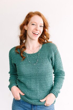 The Adeline Crew Sweater features a very easy pattern with just one row repeat, allowing you to create a beautiful and intricate-looking garment with minimal effort. The simplicity of the pattern makes it an excellent choice for beginners or for those looking for a relaxing and enjoyable crochet project. The sweater’s long sleeves are modified drop-shoulders, adding a relaxed and comfortable fit. This design detail enhances the overall comfort of the garment, making it perfect for cozy days and chilly evenings.