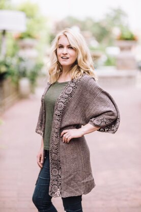 This beautiful cardigan starts with a row of beautiful motifs that is worked on both fronts and center back. The rest of the body is worked sideways in a simple Double crochet pattern. The ¾ length sleeves are worked in double crochet with a row of motifs at the cuffs.