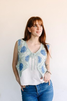 This beautiful vest is worked in a lacy floral square for each front panel and the back. The sides are worked in simple filet crochet that can adjust the necessary sizes. This pattern can be worked in two colors or the whole vest can be worked in one color.