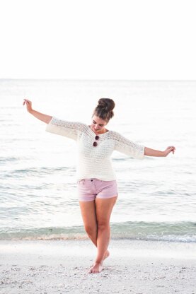 Crochet this simple T-shaped beachy top with the most basic stitches and comfortable drape. All you do is make two panels and sew them together, so easy! Cotton blend yarn is light and breezy in the summer and this sweater will be the one you grab all season long.