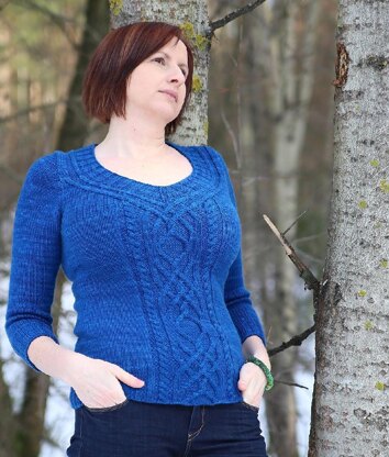 Cabeladabra, the sweater with the magical cable, will delight you with a center cable full of unexpected twists and turns that culminate in a flattering neckline just right to show off all your favorite necklaces.