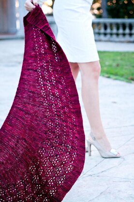 Imagine romance in Paris, a concert in Vienna, an afternoon stroll in Prague, a glass of Cabernet Sauvignon in California's vineyards, a coffee break at work, or a cup of tea on your back porch. This shawl is meant to be worn at any moment you want to feel fabulous! The sideways construction, while simple, will hold your interest with all the twists and turns along the way. This shawl features the beautiful Cabernet Cable, modern, yet classic at the same time.