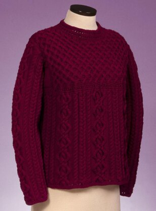 I’ve always loved the lattice stitch and thought it would make a lovely yoke for a sweater. I think it looks beautiful with the basket lattice framed by simpler cables. I used the Ridged Eyelet Border to separate and define the yoke and body, as well as to finish the neck, cuffs and hem. It’s such a simple stitch but it makes a big impact. This pullover is worked from the bottom up in pieces, then sewn together.
