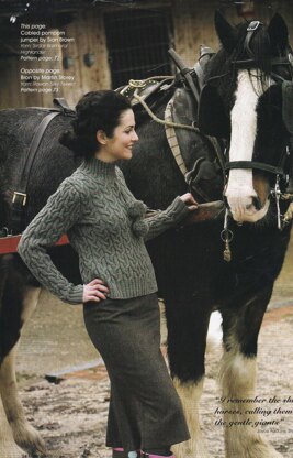 This is a pattern for a Cable and Pompom jumper, originally published in Knitting magazine. It has an all over cable, rib edges and a pompom tie. It was from the Land Girl s issue. Photo Laurel Guilfoyle.