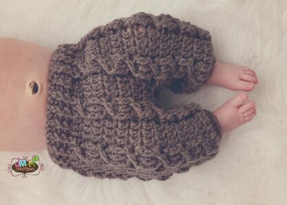 This is a PDF crochet pattern for a textured pair of baby pants (or shorties) that coordinates perfectly with my Cable Cross Beanie pattern. This is not a beginner pattern.