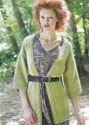 This is a pattern for a Cable edge Cardigan, originally published in Knitting magazine. It is a simple shape with no fastening, in stocking stitch with a cable detail on the edges. Photo Lauren Guilfoyle for Knitting magazine.