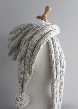 You will need 220 yards of a bulky weight yarn that has a gauge of 2 sts per inch and a US #15 needle and a cable needle.