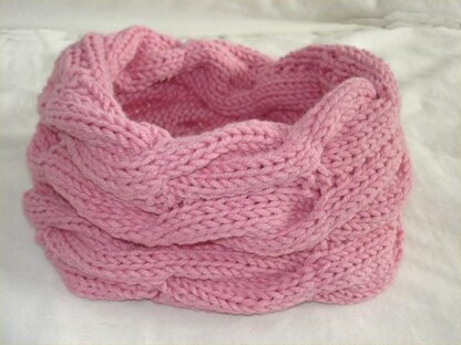 This scarf is warm, easy, comfortable and is knit with a soft, chunky weight yarn with just enough stitch detail to catch someones eye. It is so easy to wear, no tangled mess and also looks great as an accessory. Basic cable knowledge.